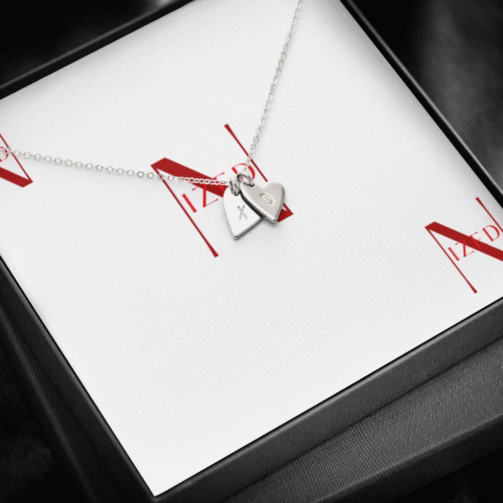 Diese süße und zierliche Halskette ist ein besonderer Weg, ihr das Gefühl zu geben, geliebt zu werden! Stellen Sie sich ihren Gesichtsausdruck vor, wenn sie die süßen asymmetrischen Herzen mit den persönlichen, handgestempelten Buchstaben auf der Vorderseite des Anhängers sieht.